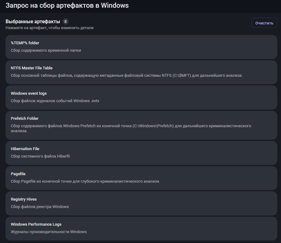 Инструмент помогает сдерживать и нейтрализовывать угрозу: изолировать скомпрометированные хосты, принудительно завершать вредоносные процессы, удалять отдельные файлы, отключать учетные записи и т.д.