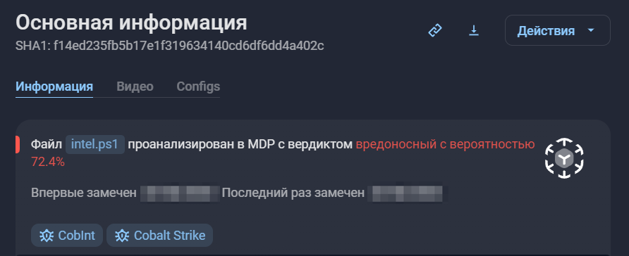 Пример из уже упомянутого кейса: для анализа скрипта файл отправили в модуль Malware Detonation Platform.
