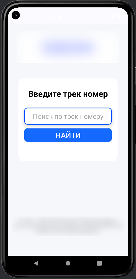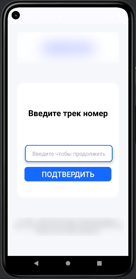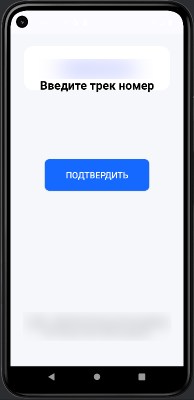 Данная активность предназначена для отображения модерируемого командой от сервера текстового поля, которое по умолчанию имеет значение «Введите трек номер». После нажатия кнопки «подтвердить» отображается активность с анимацией загрузки.