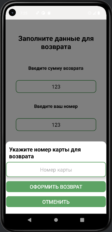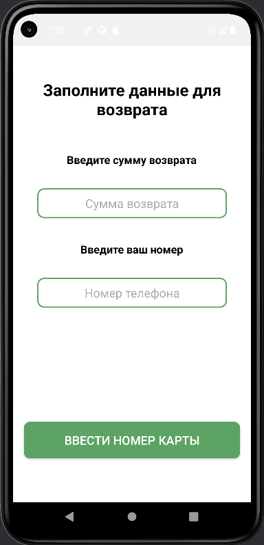 После того, как пользователь введет данные и нажмет на кнопку оформить возврат, будет отображена активность загрузки, а также выполнен POST-запрос на C2-сервер с gateway: /user-info и JSON-объектом вида: