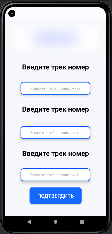 После того, как права были выданы, и пользователь нажал на кнопку подтвердить, приложение переходит к основной активности ввода трек номера.