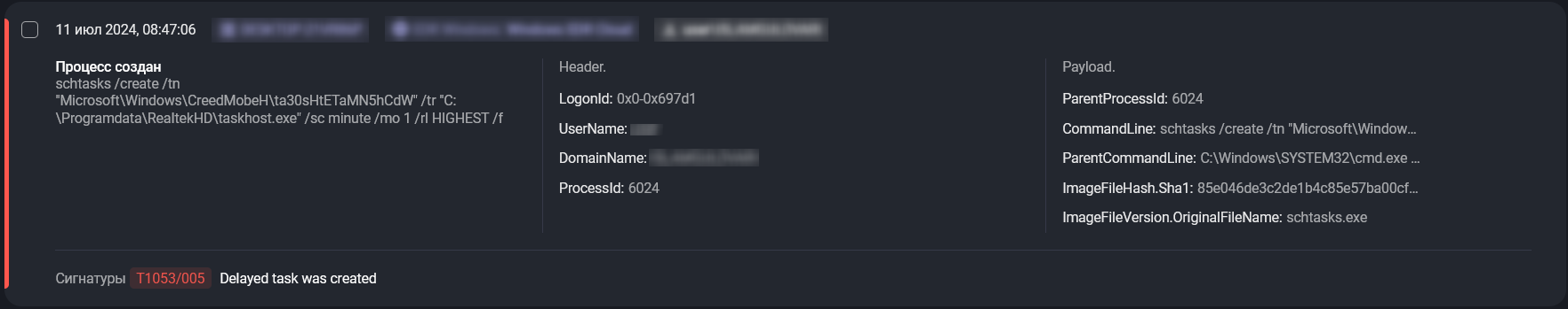 Создание запланированных задач (T1053.005: Scheduled Task) | Запланированные задачи в Windows изначально предназначены для автоматизации запуска программ и скриптов по заданным условиям, например, при запуске системы, входе пользователя или в конкретно обозначенное время. Однако злоумышленники активно используют данный механизм для закрепления в инфраструктуре и скрытого выполнения вредоносного кода. |