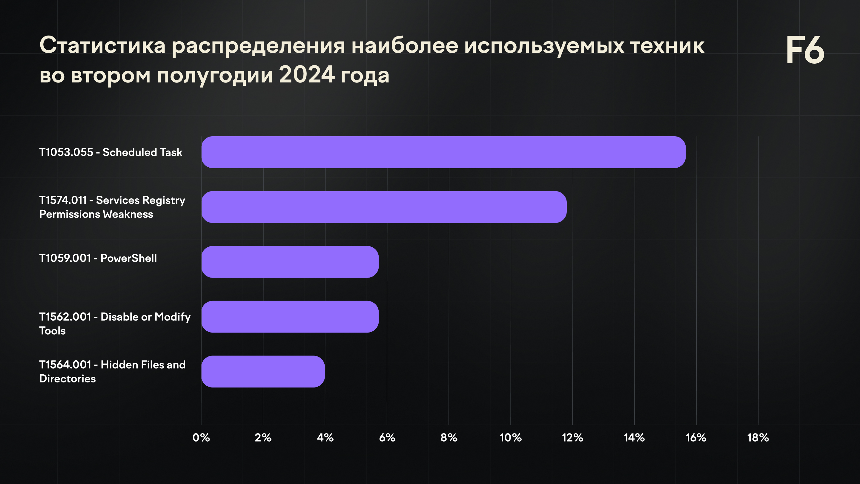 Рисунок 13. Статистика распределения наиболее используемых техник на второе полугодие 2024 года.