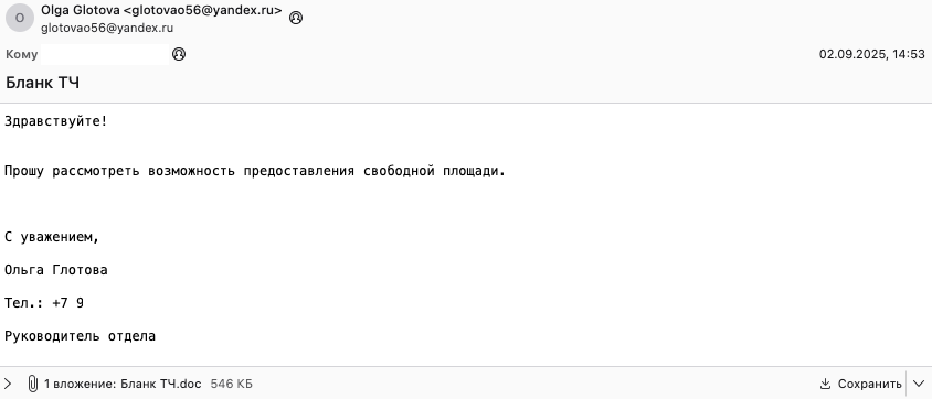 Рис. 5. Фишинговое письмо, рассылаемое злоумышленниками в сентябре 2025 года