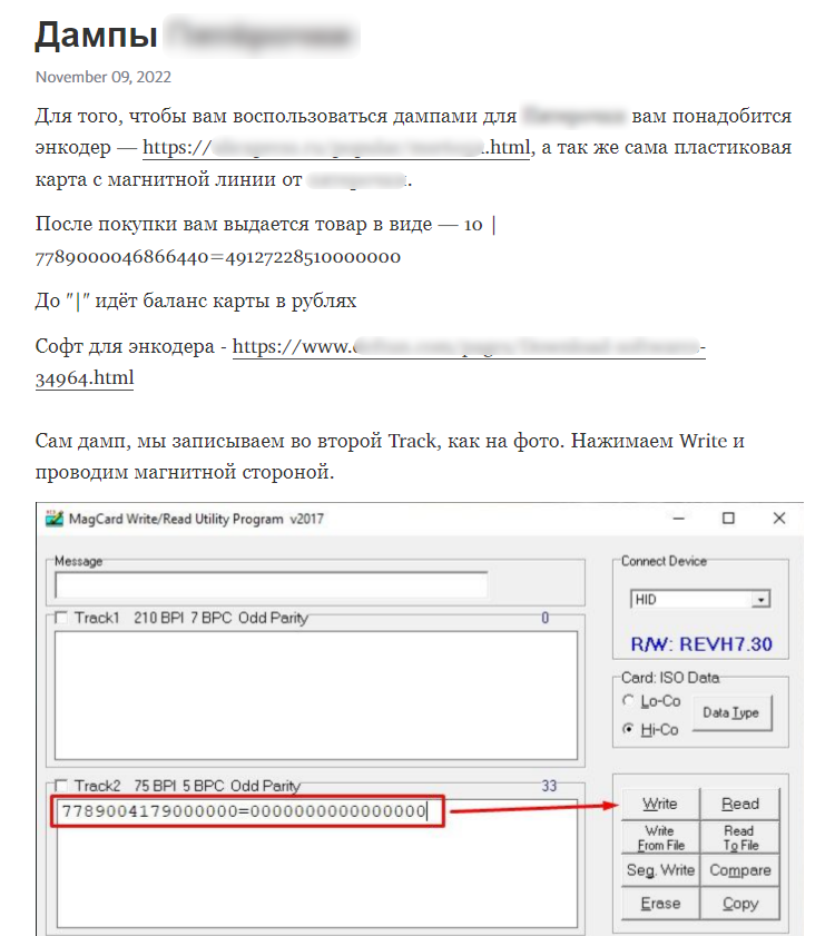 Дамп – закодированная строка с аналогичными данными, которую нужно записывать на пластиковую карту с магнитной лентой при помощи устройства, называемого энкодером. Физические карты считаются на подпольном рынке более надёжным товаром, чем автоштрих, который может действовать всего один час.