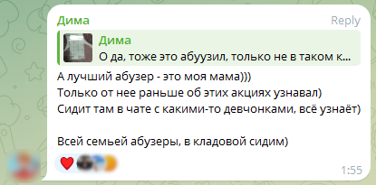 Вторая категория – те самые «цивилы» и «нормисы» (на сленге – обычные люди с типичными увлечениями), которые покупают баллы по одной простой причине: из экономии. Среднего возраста, среднего достатка, среди них много женщин. Они узнают о шопах от своих подросших детей или оффлайн-знакомых, вступают в чаты. Порой в чатах от имени таких пользователей пишут восторженные сообщения о том, как на один «штрих» купили «полный пакет продуктов» или накрыли новогодний стол «в два раза богаче и при этом в два раза дешевле, чем в прошлом году». Определить со 100-процентной уверенностью, оставил такое сообщение реальный пользователь или это скрытая реклама с подставного аккаунта, вряд ли получится. Как пишет один из завсегдатаев чата скаммерсантов при популярном, пережившем уже не одну реинкарнацию боте: «Лучший абузер – это моя мама».