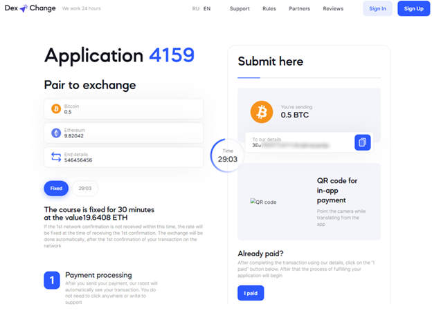 В случае с поддельными сервисами обмена криптовалют ситуация ещё проще. Жертва переводит деньги на кошелёк, указанный на сайте, и обратно ничего не получает.