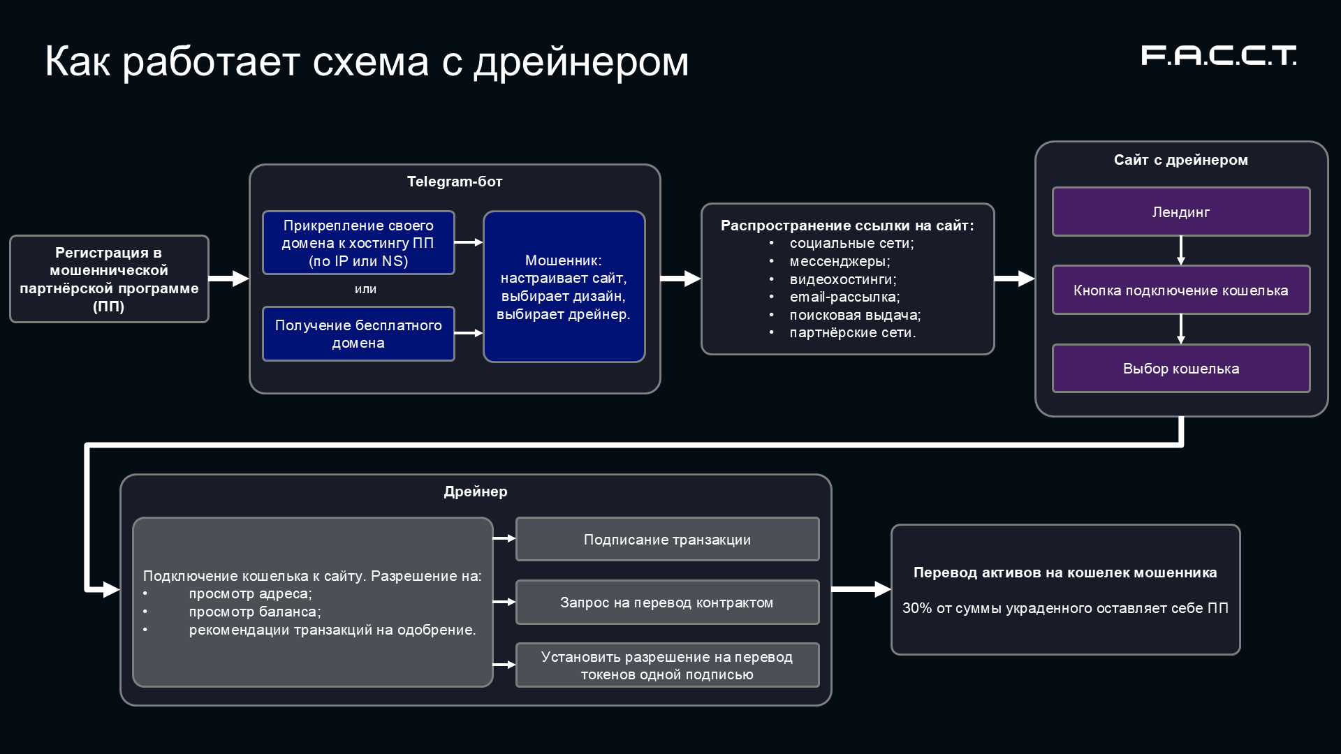 Со второй половины 2022 года злоумышленники начали активно использовать для краж криптовалюты дрейнеры.