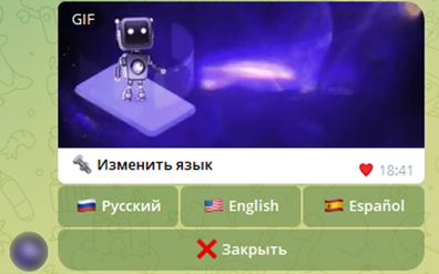 Основной инструмент деятельности в этой группе – Telegram-бот. Он поддерживает три языка: русский, английский и испанский.