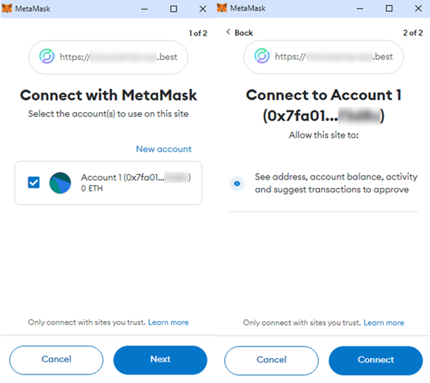 После выбора кошелька откроется окно с официальным расширением выбранного кошелька, и жертва получить возможность подключить свой кошелёк к мошенническому сайту.