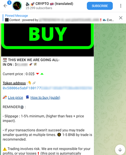 Рисунок 5. Публикация в Telegram с рекомендацией покупки скам-токена
