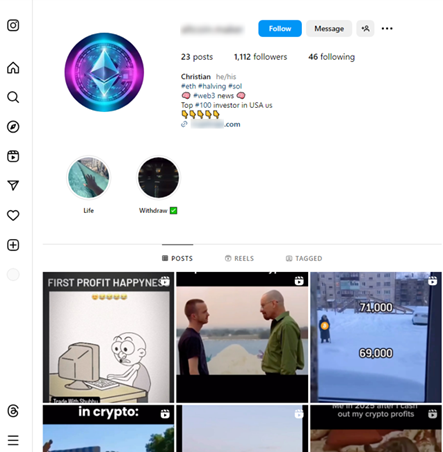 Рисунок 8. Мошеннический аккаунт в Instagram*