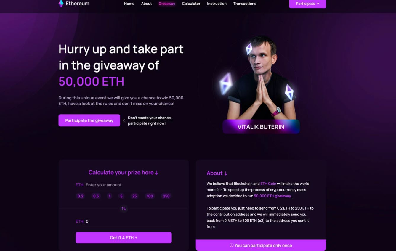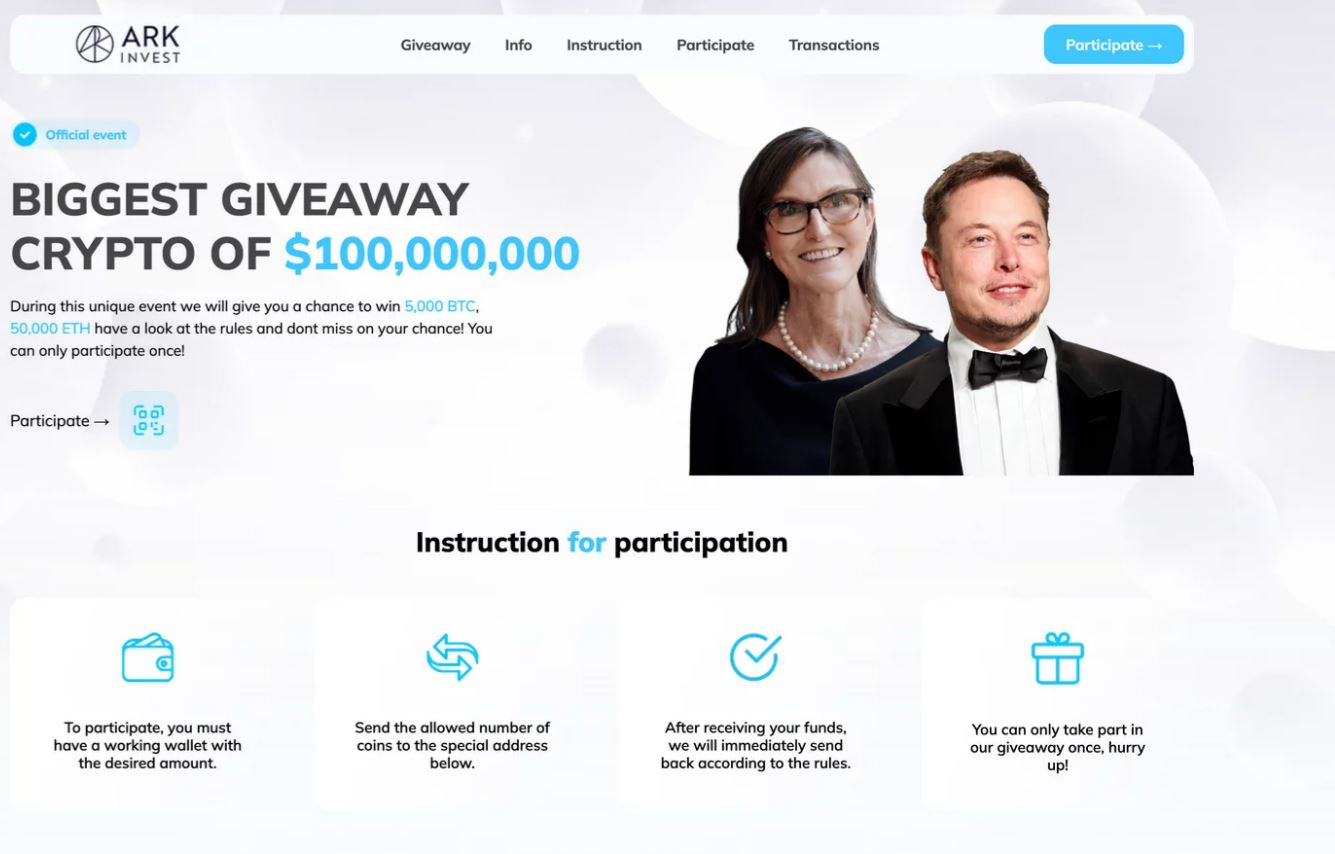 Для тех, кто не читал наш первый блог, напомним суть схемы. На YouTube массово появляются фейковые стримы звездных предпринимателей: Виталика Бутерина, Илона Маска, Майкла Сэйлора и Кэтрин Вуд. Под предлогом популяризации криптовалют они заманивают потенциальных криптоинвесторов на промосайт, где указан адрес “волшебного кошелька”, якобы удваивающего отправленную криптовалюту.