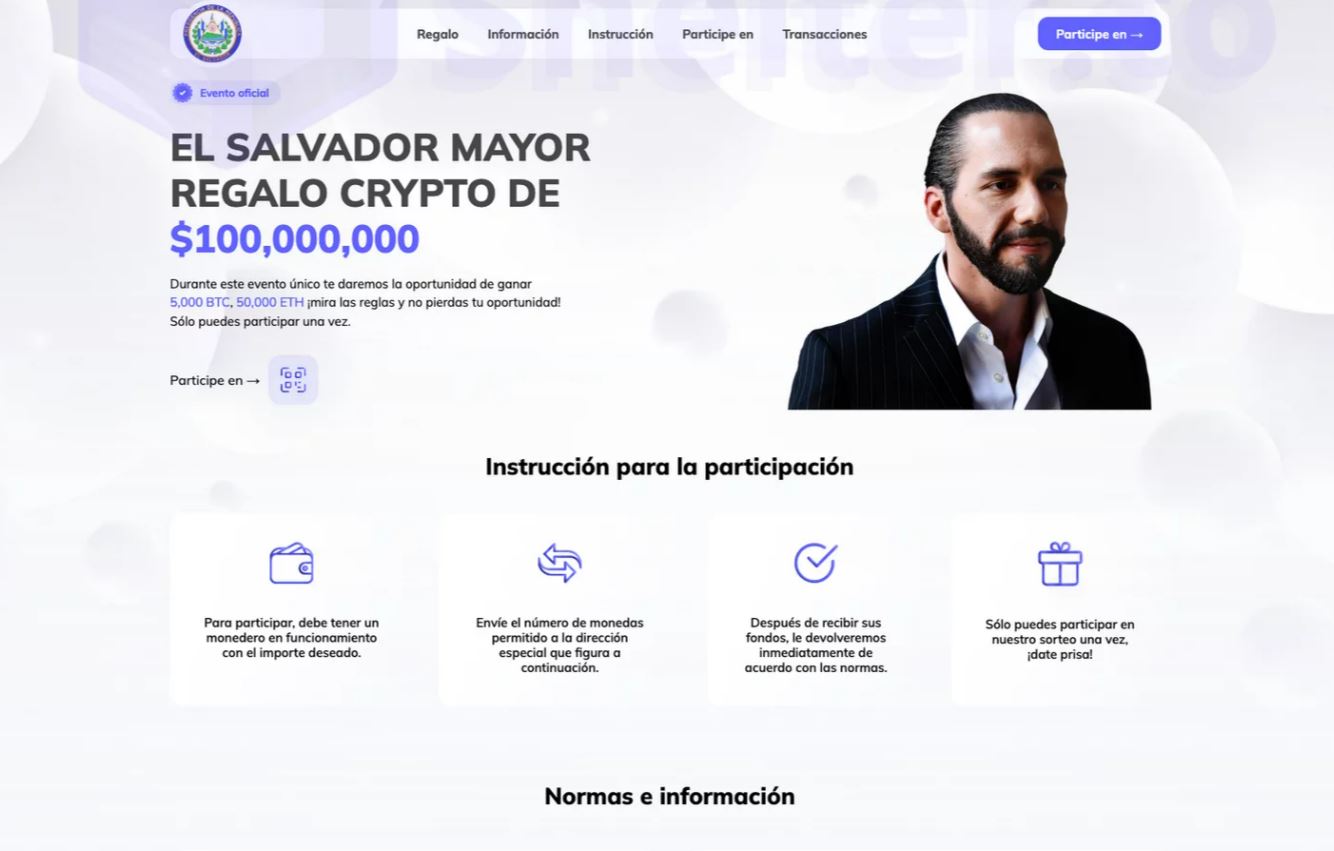 В 2022 году наибольшей популярностью пользуются Виталик Бутерин, Илон Маск, Майкл Дж. Сэйлор и Кэтрин Вуд. Среди новых звезд-приманок оказался президент Сальвадора Найиб Букеле, а недавно началась реклама промосайтов с футболистом Криштиану Роналду. Оба новых рекламных лица были выбраны мошенниками неслучайно. В 2021 году Сальвадор стал первым в мире государством, которое объявило биткоин легитимным платежным средством — во многом по инициативе президента страны. Криштиану Роналду стал первым футболистом, кто получил награду криптовалютой: клуб “Ювентус” подарил спортсмену токены по числу голов, забитых за всю карьеру. А в июне 2022 года о сотрудничестве с футболистом объявила криптобиржа Binance.