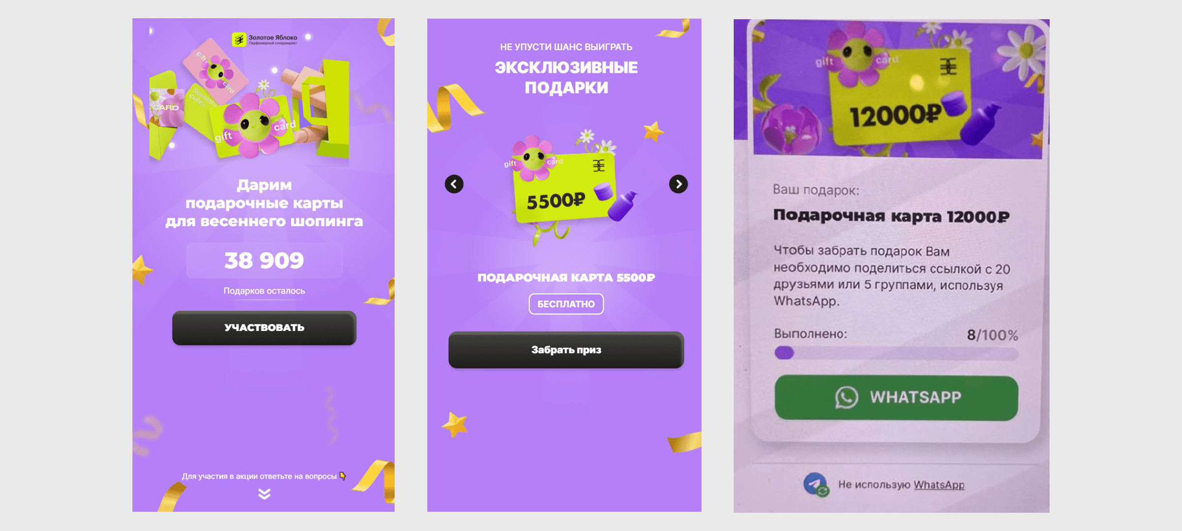 - Розыгрыши от имени «Золотого Яблока» на сторонних ресурсах.