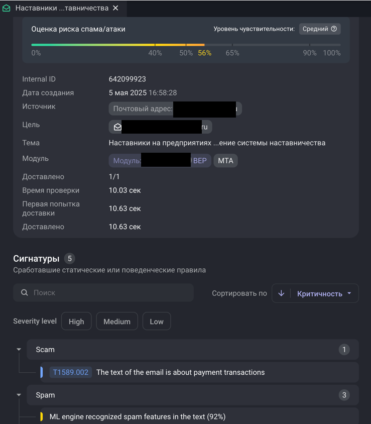 F6 BEP может проверять не только входящие, но и исходящие письма. Это помогает предотвратить вредоносную рассылку от сотрудника в случае компрометации почтового ящика.