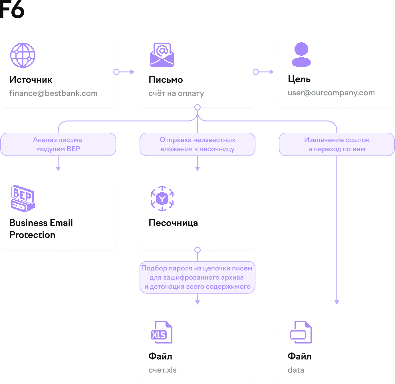 Теперь разберем, как F6 BEP защищает бизнес от распространенных сценариев атаки.