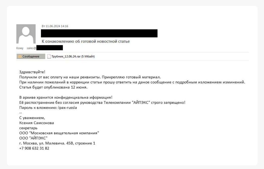 Представьте: в компанию приходит сообщение с зашифрованным архивом. Внутри находится коммерческое предложение, запрос в бухгалтерию или готовый материал для публикации.