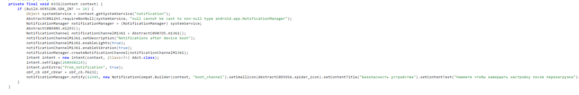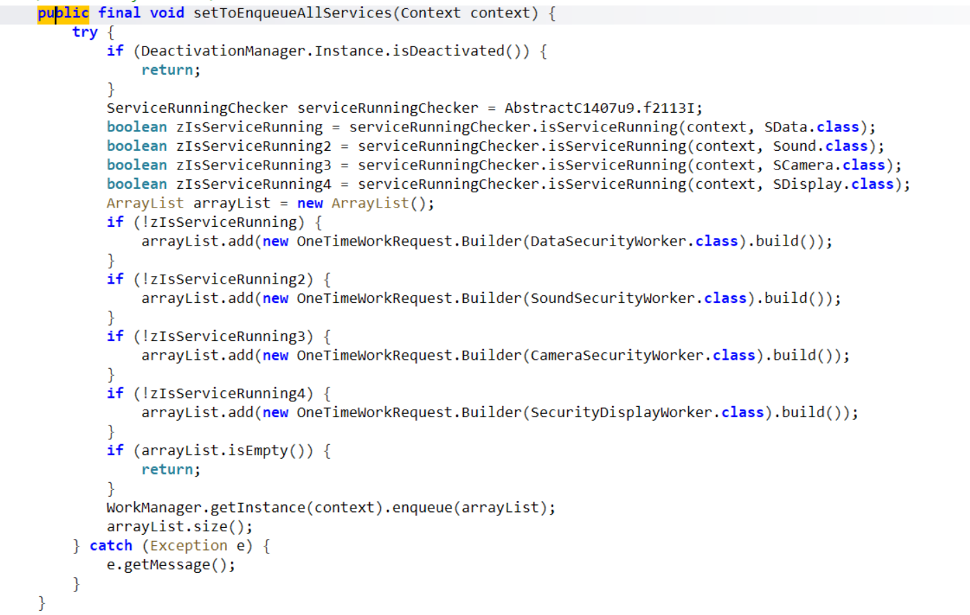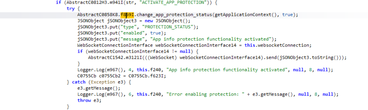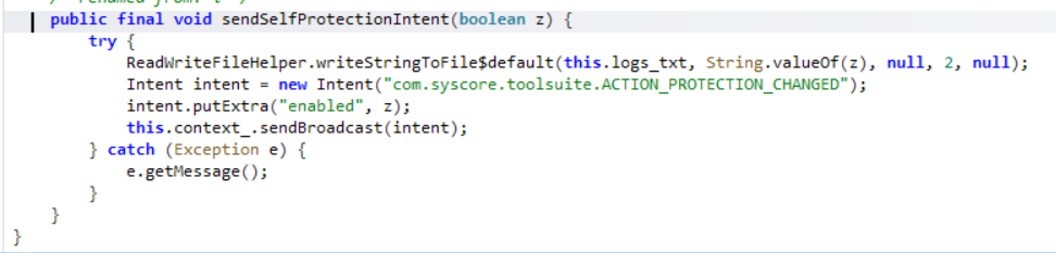 Рисунок 8. Отправка intent об изменении статуса самозащиты приложения.