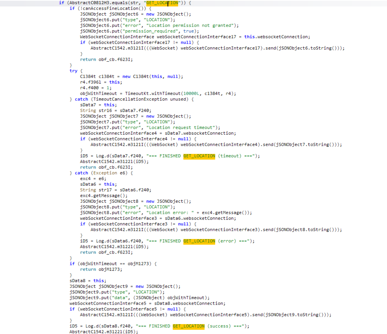 Рисунок 10. Обработка команды получения местоположения устройства.