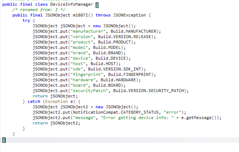 GET_DEVICE_INFO. При получении такой команды осуществляется сбор информации о модели и производителе устройства. На сервер отправляются такие значения, как: