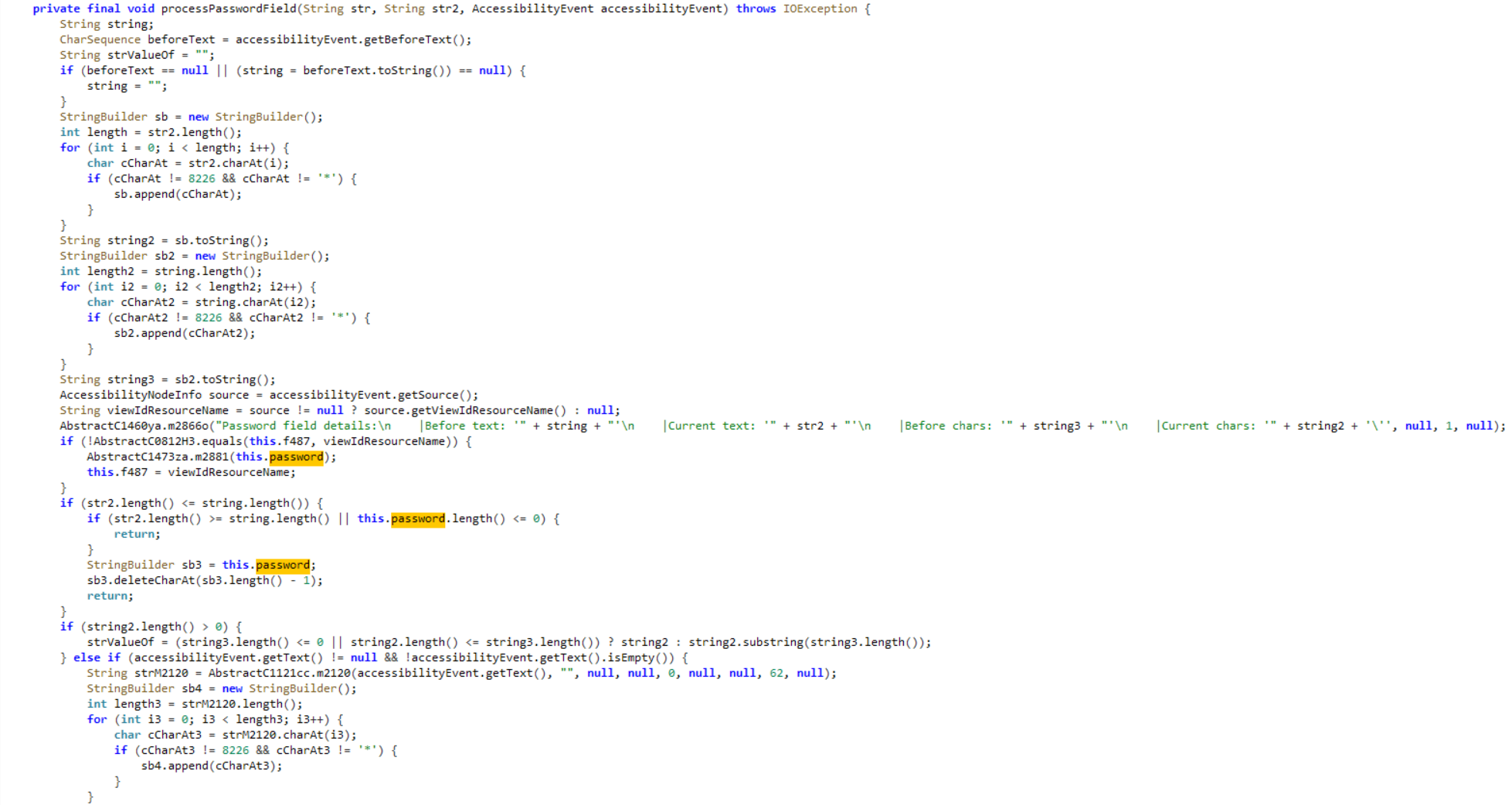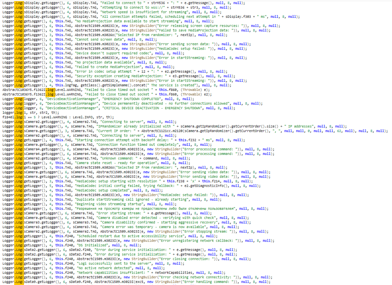 LunaSpy осуществляет постоянный контроль работы этих сервисов несколькими способами, обеспечивая перезапуск любого из них в случае аварийного завершения или завершения пользователем. А с помощью функционала сервиса Accessibility в ОС Android производится контроль попыток удаления или остановки работы приложения — при обнаружении соответствующих окон настроек приложение имитирует нажатие пользователем кнопки «Назад». LunaSpy устанавливает соединения с целым пулом доменных адресов и имеет в коде еще несколько неиспользованных пулов доменных адресов, которые, вероятно, могут быть использованы в других сборках ВПО.