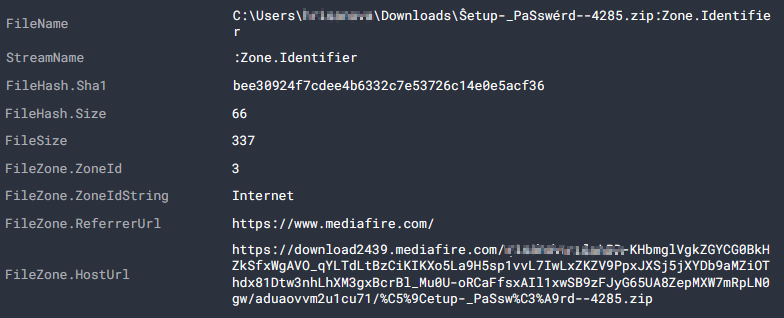 Рис. 2. Сведения о загрузке вредоносного архива с файлообменника MediaFire