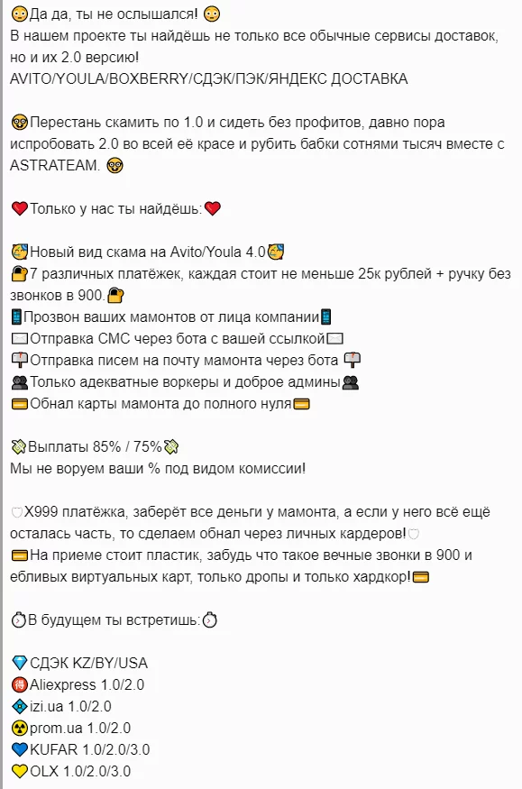 В ходе изучения форумов мы пришли к выводу, что количество подобных группировок исчисляется десятками. Абсолютно все преступные группы заинтересованы в масштабировании своего бизнеса и привлечении свежих сил.