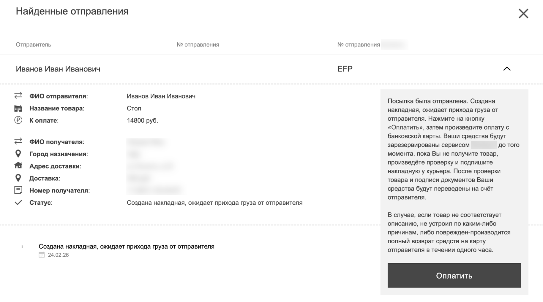 Рис.3 – Пример использования бренда сервиса доставки на фишинговом ресурсе