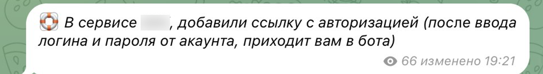 Рис.7 – Сообщение одной из мошеннических команд о появлении фишинга сервисов