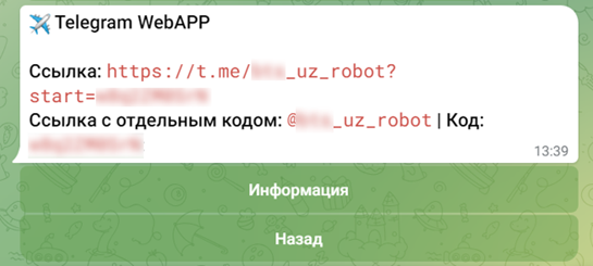 Рис.4. Меню Telegram-бота с пунктом генерации ссылки для схемы FakeDate