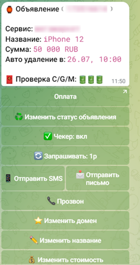 Некоторые боты предлагают услуги парсера – бесплатно или по скидке у партнёров. Мошенники используют их для автоматизации поиска объявлений на досках объявлений и, соответственно, быстрого формирования списка потенциальных жертв.