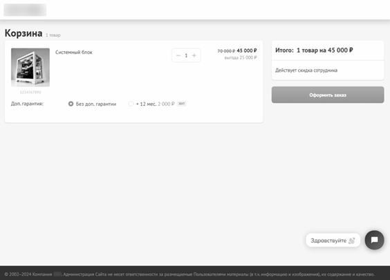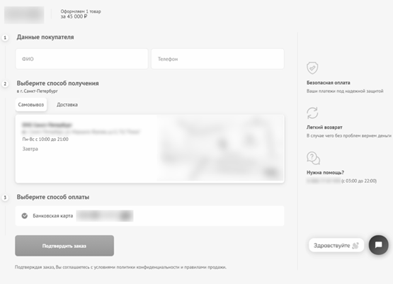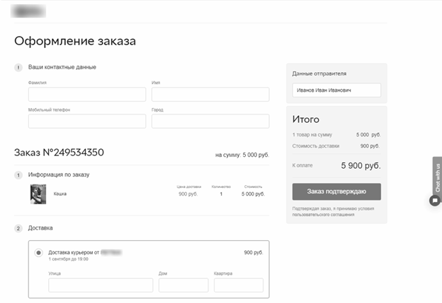 Рис.20. Страница оформления заказа на фишинговом сайте