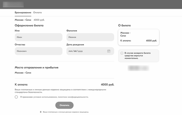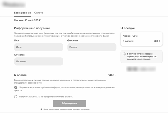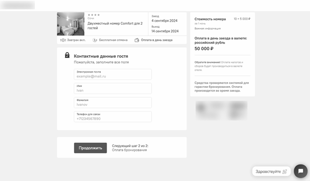 Рис.32. Страница оформления бронирования на фишинговом сайте