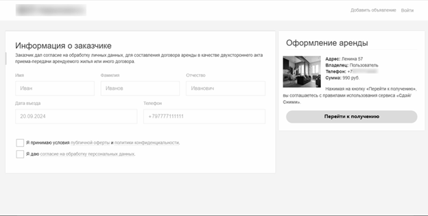 Рис.29. Страница оформления аренды на фишинговом сайте