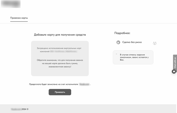 Скамер под видом заказчика публикует на сайтах услуг задания и ищет исполнителей. Желающих заработать переводит в мессенджеры, где предлагает получить аванс по ссылке, которая ведёт на фишинговый сайт. Обязательное условие перевода предоплаты, которое выдвигает заказчик – наличие на карте исполнителя суммы не меньшей, чем сумма аванса. Разумеется, для того, чтобы было что похитить.