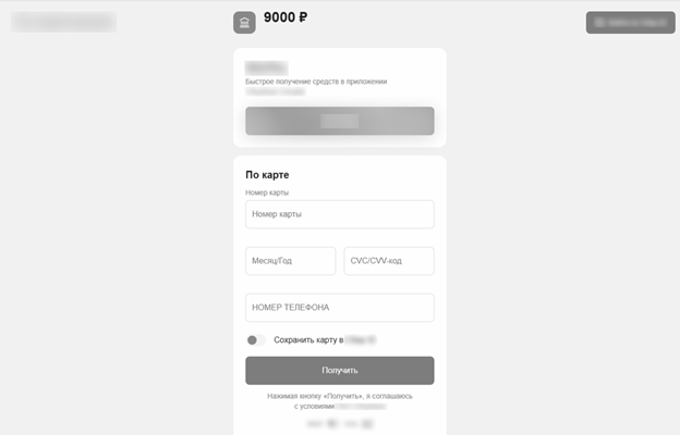 Рис.30. Страница оформления аванса на фишинговом сайте