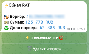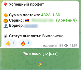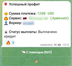 - использование нового способа доставки RAT (Remote Access Trojan, или троян удалённого доступа) на устройства пользователей, совершивших платёж по фишинговой ссылке, для получения полного контроля, оформлением кредитов на жертв и выводом всех средств с их банковских счетов;