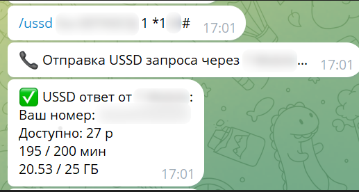 Рисунок 25. Отправка команды /ussd и получение результата