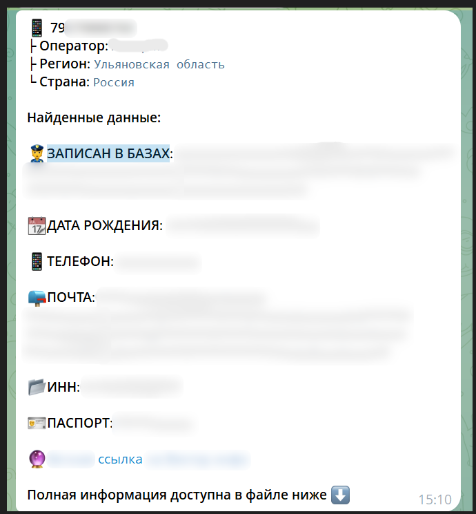 Получив номер телефона жертвы, злоумышленники проводят активное исследование ее личности, производят поиск персональных данных в открытых данных и утечках информации через специализированные сервисы.