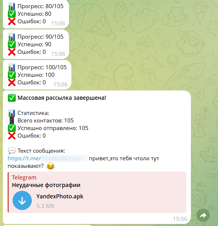 Рисунок 2. Массовая рассылка Mamont с зараженного устройства