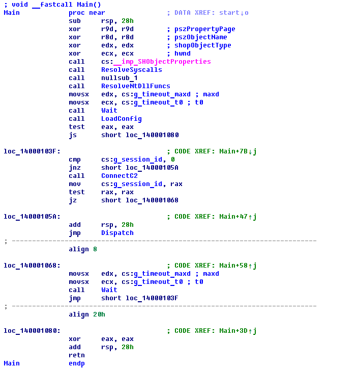 Выявленная программа даже при своем небольшом размере, около 47 килобайт, оказалась достаточно любопытным инструментом. В результате анализа было установлено, что программа dwm.exe является агентом-загрузчиком, по команде из управляющего сервера (C2) агент может производить загрузку из сети интернет программного модуля PE и его запуск непосредственно в памяти текущего процесса. Примечательно, что взаимодействие агента с C2 осуществляется с помощью протокола DNS. К сожалению, на данный момент получить полезную нагрузку не удалось.