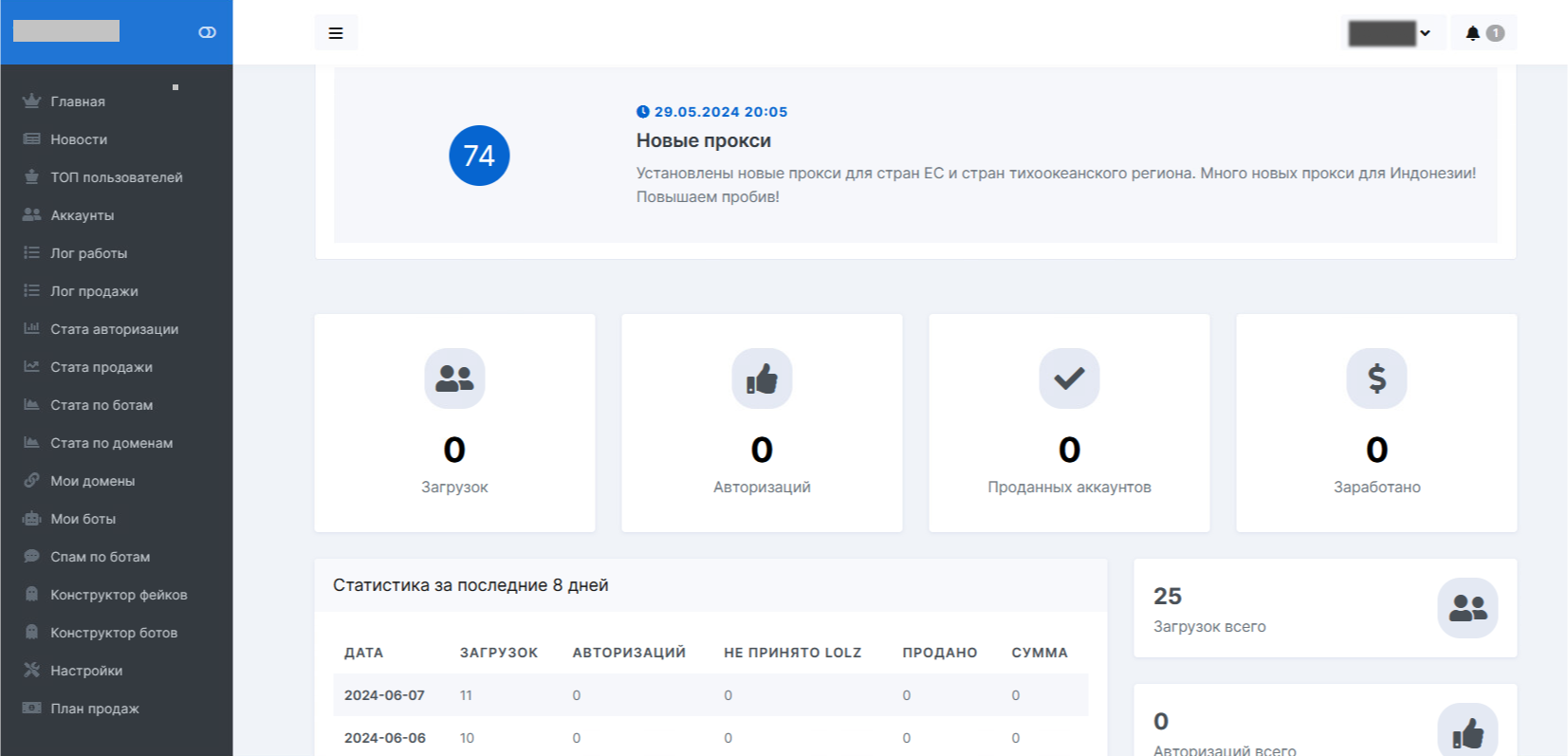 Пользователи панели могут выгружать логи автоматически на маркет форума, совершая так называемые АвтоПродажи (при этом можно самостоятельно регулировать стоимость в личном кабинете панели).