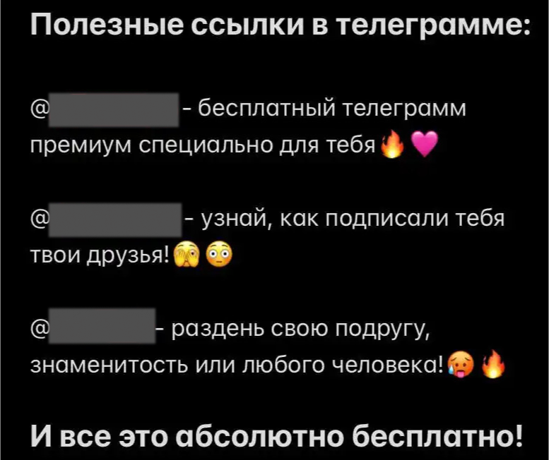 Вы часто видели в мессенджере рекламу сервисов, которые предлагают подарить Telegram Premium, «пробить» данные о другом пользователе, «раздеть» подругу, «накрутить лайков», либо просьбу проголосовать в фотобатле? Это не что иное, как расставленная ловушка для угона вашего аккаунта в Telegram или WhatsApp.