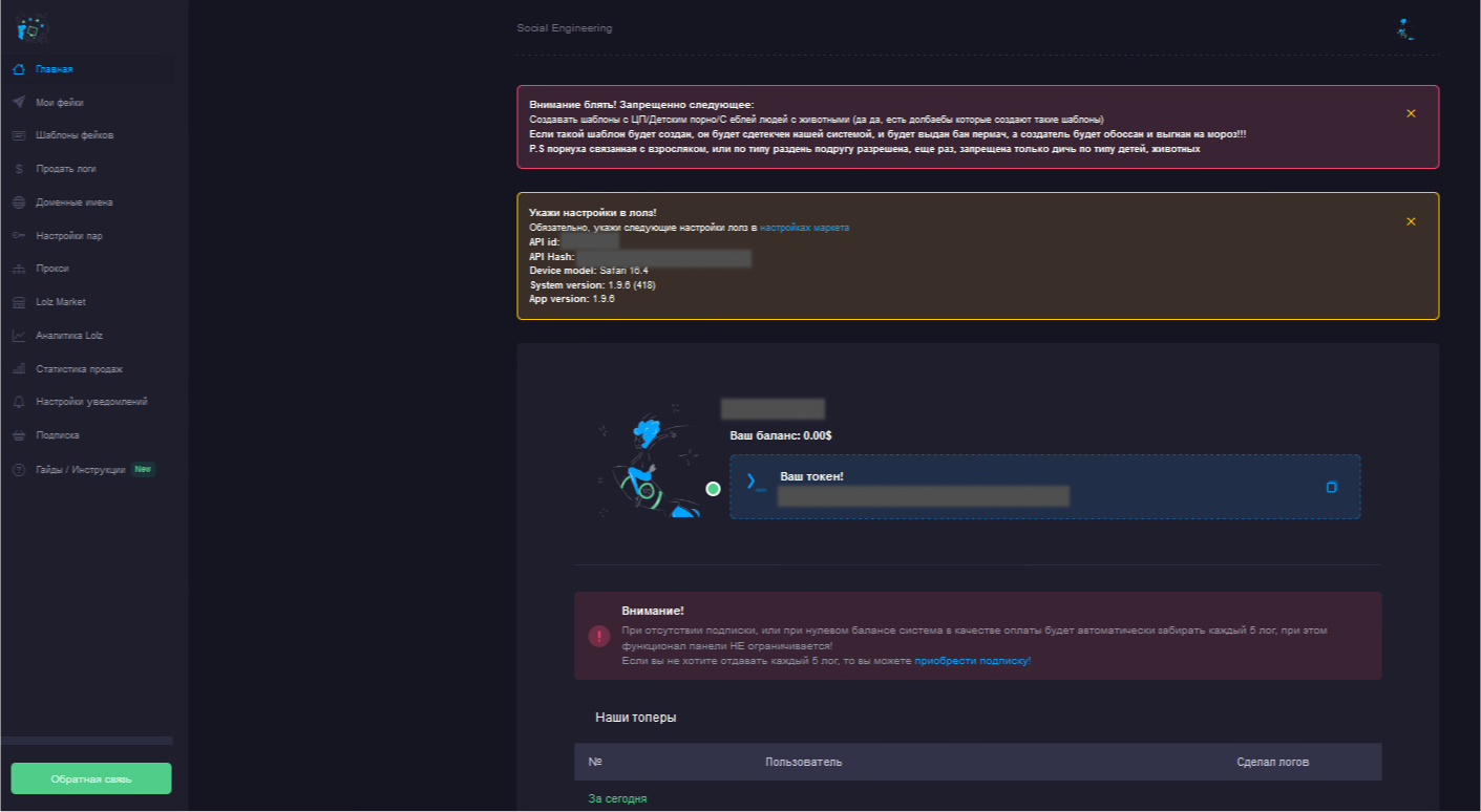 На фишинговой платформе собирается статистика о работе пользователей и формируется рейтинг, поэтому для постоянных пользователей есть определенные бонусы: топ 5 пользователей реже платят «налог» — удерживается каждый 6 лог, топ 1 недели — 1 день подписки на панель (не взимается комиссия), топ 1 месяца — 5 дней подписки на веб-панель.