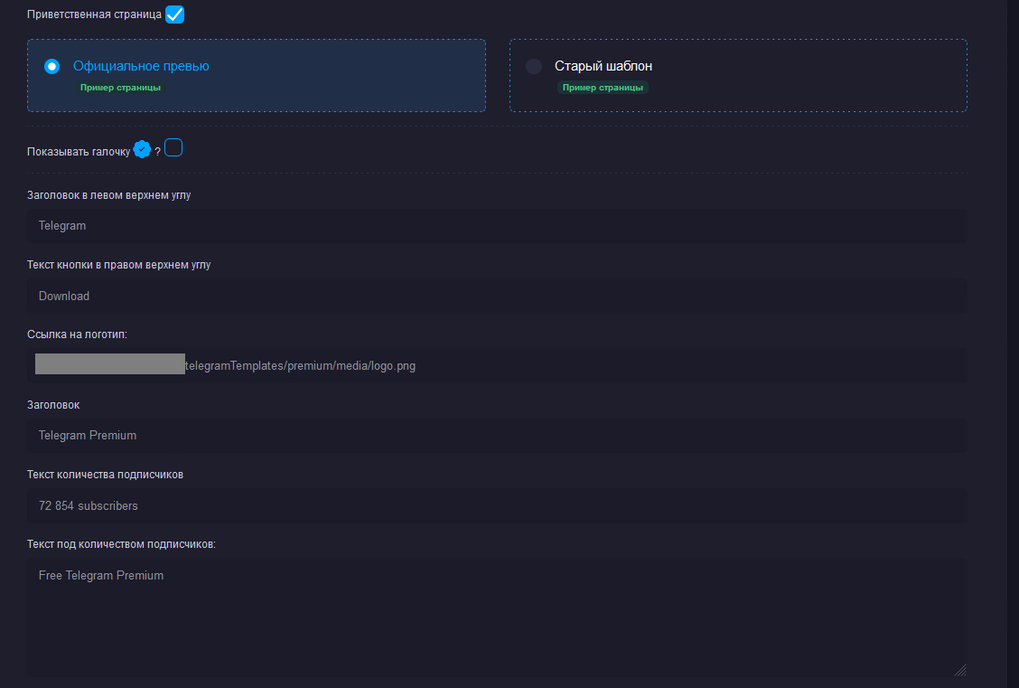 Рис.11. Фишинговый ресурс Telegram premium (шаблон «Официальное превью»)