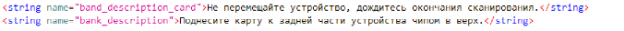Также в приложении обнаружены строковые значения, призывающие приложить карту к NFC-датчику устройства либо ввести ПИН-код.
