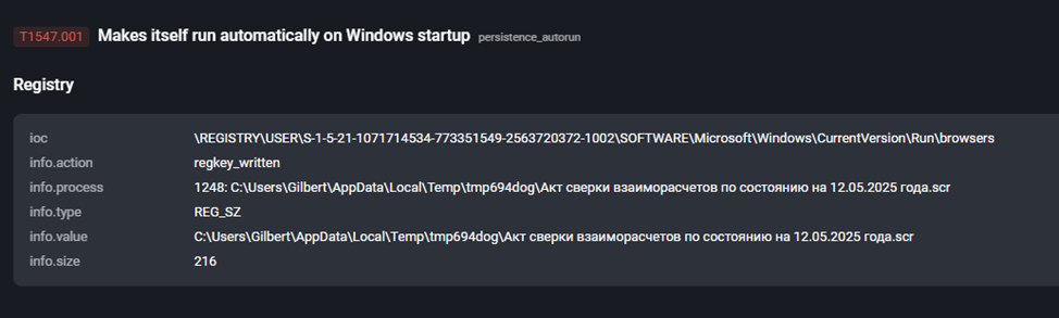 | Aкт cвepки взaимныx pacчeтoв пo cocтoянию нa 23.04.2025 гoдa.xlsx.scr — Revenge RAT | 8f08915a779fc897900be01eaa970336 |