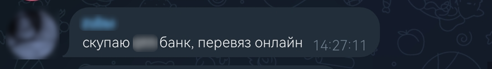 Рисунок 75. Пример объявления о скупке банковских карт, размещённого киберпреступниками в комментариях к посту