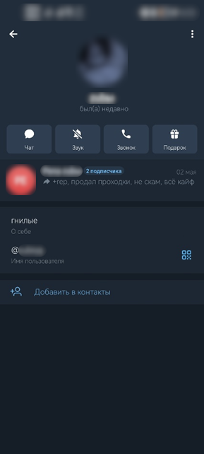 Рисунок 8. Профиль типичного бота, который используется в мошеннической схеме с предоплатой